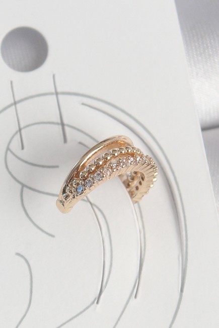 Pirinç Gold Renk Zirkon Taşlı 3'Lü Sıralı Model Kadın Kıkırdak Küpe - 262600
