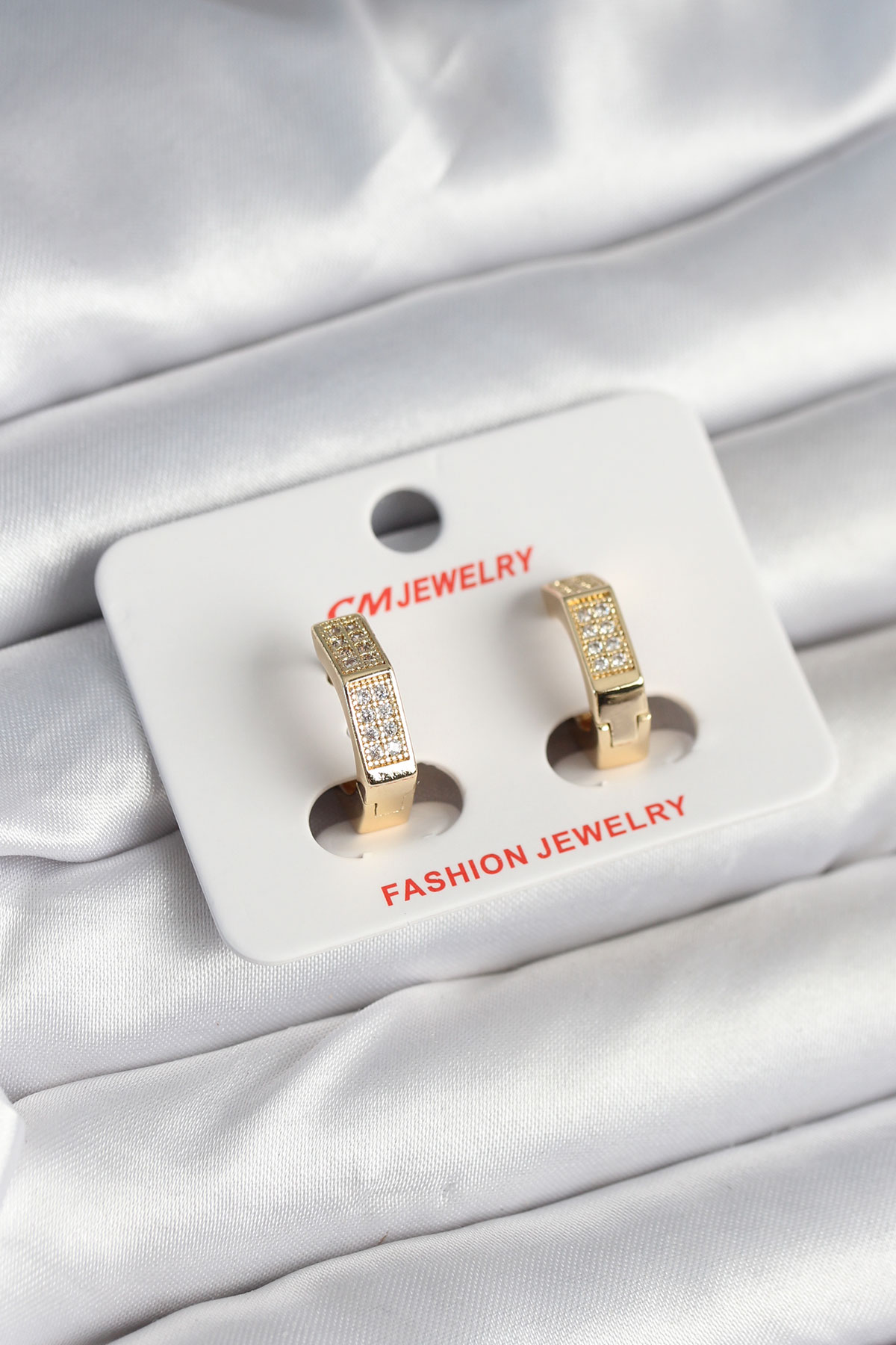 Pirinç Gold Renk Zirkon Taşlı Altıgen Kadın Küpe - 265852