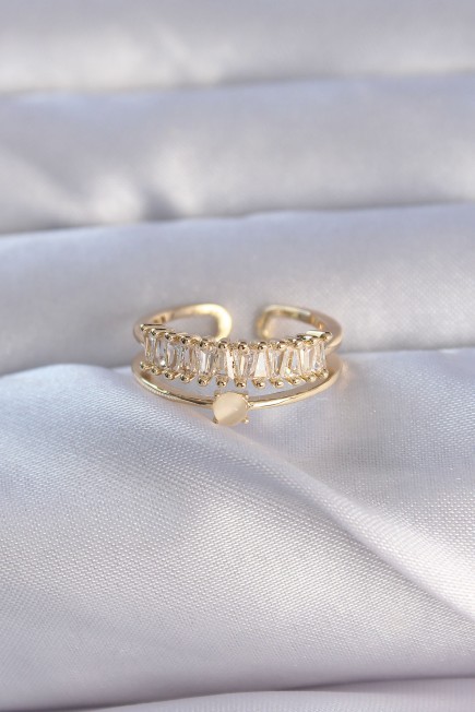 Pirinç Gold Renk Zirkon Taşlı Baget Su Yolu Model Ayarlanabilir Yüzük - 255949