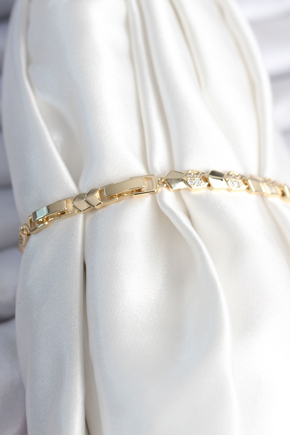 Pirinç Gold Renk Zirkon Taşlı Balık Sırtı Model Kadın Bileklik - 265866