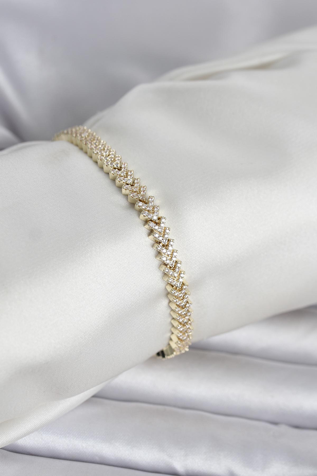 Pirinç Gold Renk Zirkon Taşlı Çavuş Model Kadın Bileklik - 268325