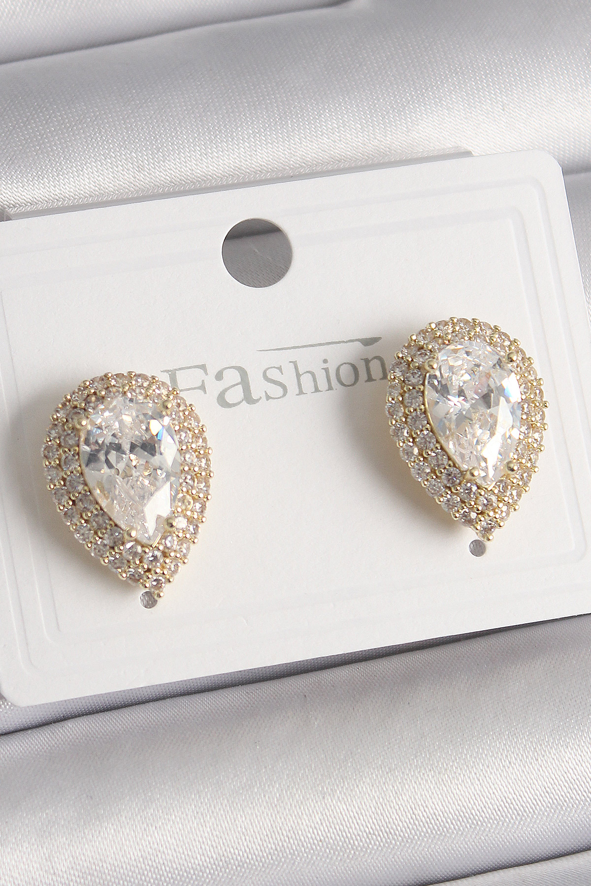Pirinç Gold Renk Zirkon Taşlı Damla Model Kadın Küpe - 259609