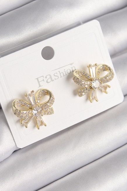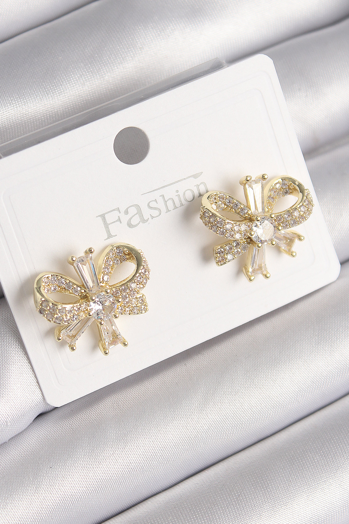 Pirinç Gold Renk Zirkon Taşlı Fiyonk Model Kadın Küpe - 259326
