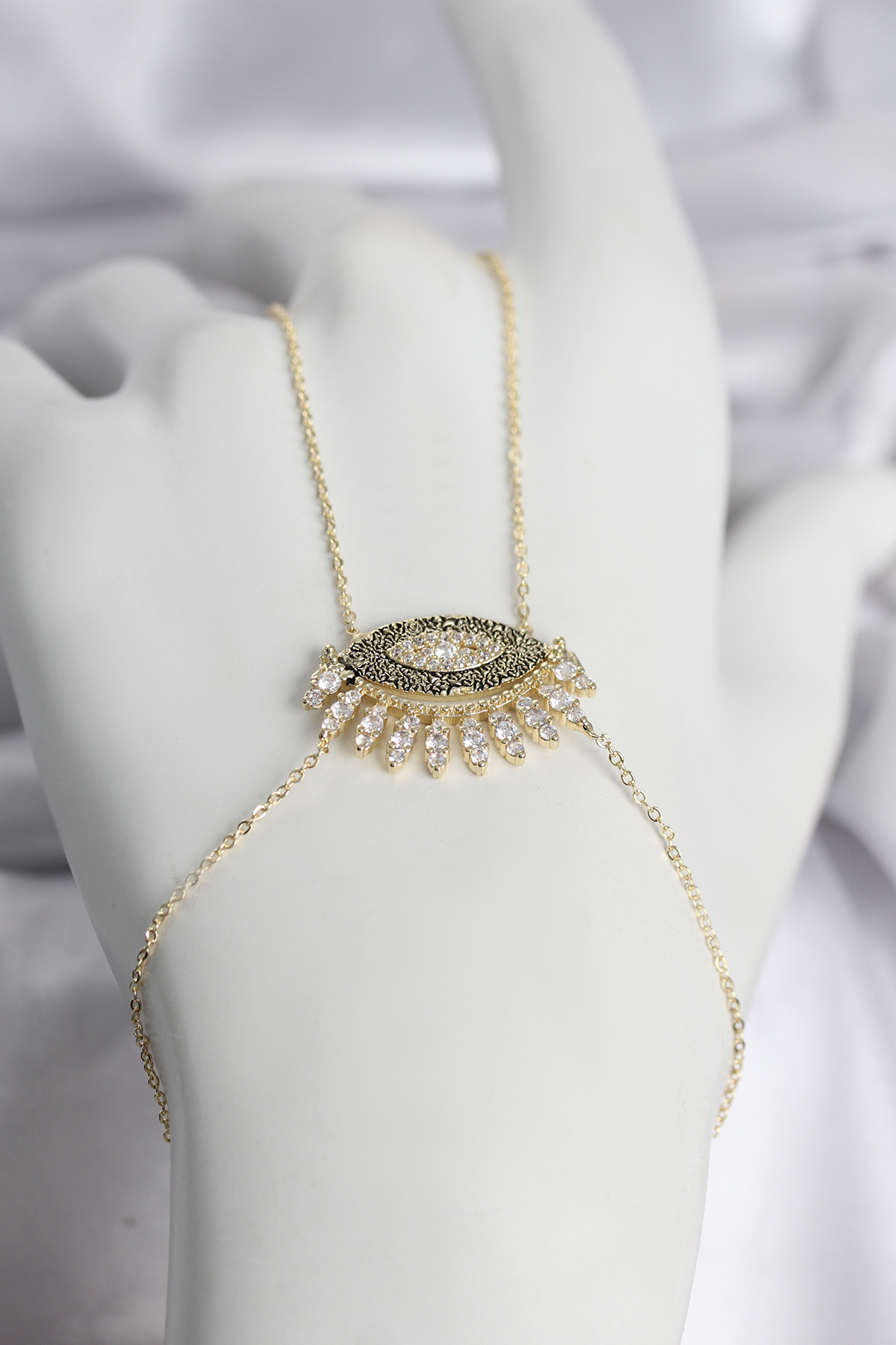 Pirinç Gold Renk Zirkon Taşlı Göz Model Kadın Şahmeran - 268168