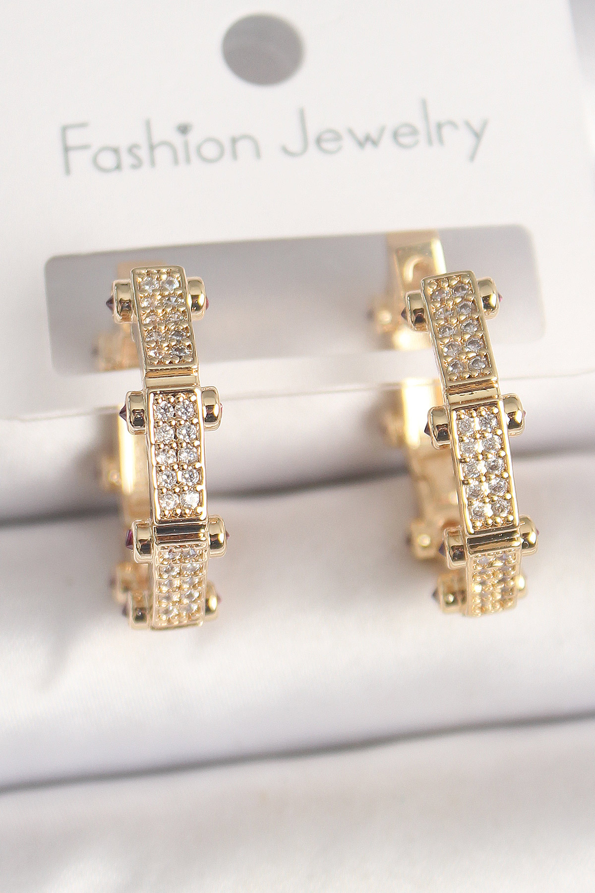 Pirinç Gold Renk Zirkon Taşlı Halka Model Kadın Küpe - 261462