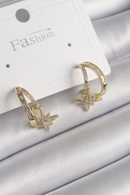 Pirinç Gold Renk Zirkon Taşlı Halka Model Yıldız Detay Kadın Küpe - 259908