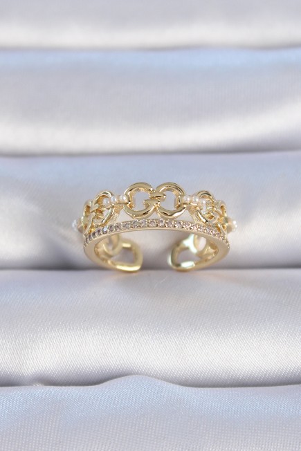 Pirinç Gold Renk Zirkon Taşlı İnci Detay Kadın Yüzük - 257846