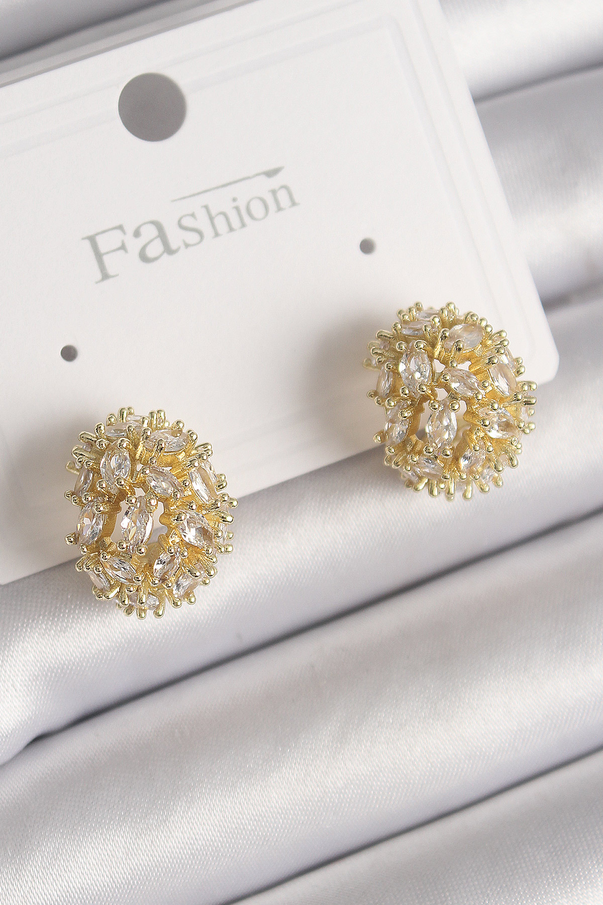 Pirinç Gold Renk Zirkon Taşlı Kadın Küpe - 259342
