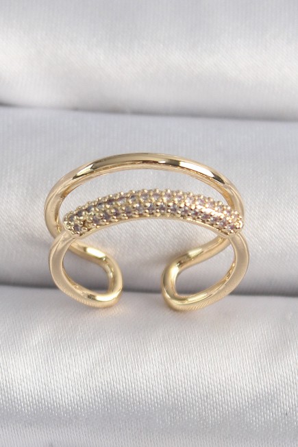 Pirinç Gold Renk Zirkon Taşlı Kadın Yüzük - 259401