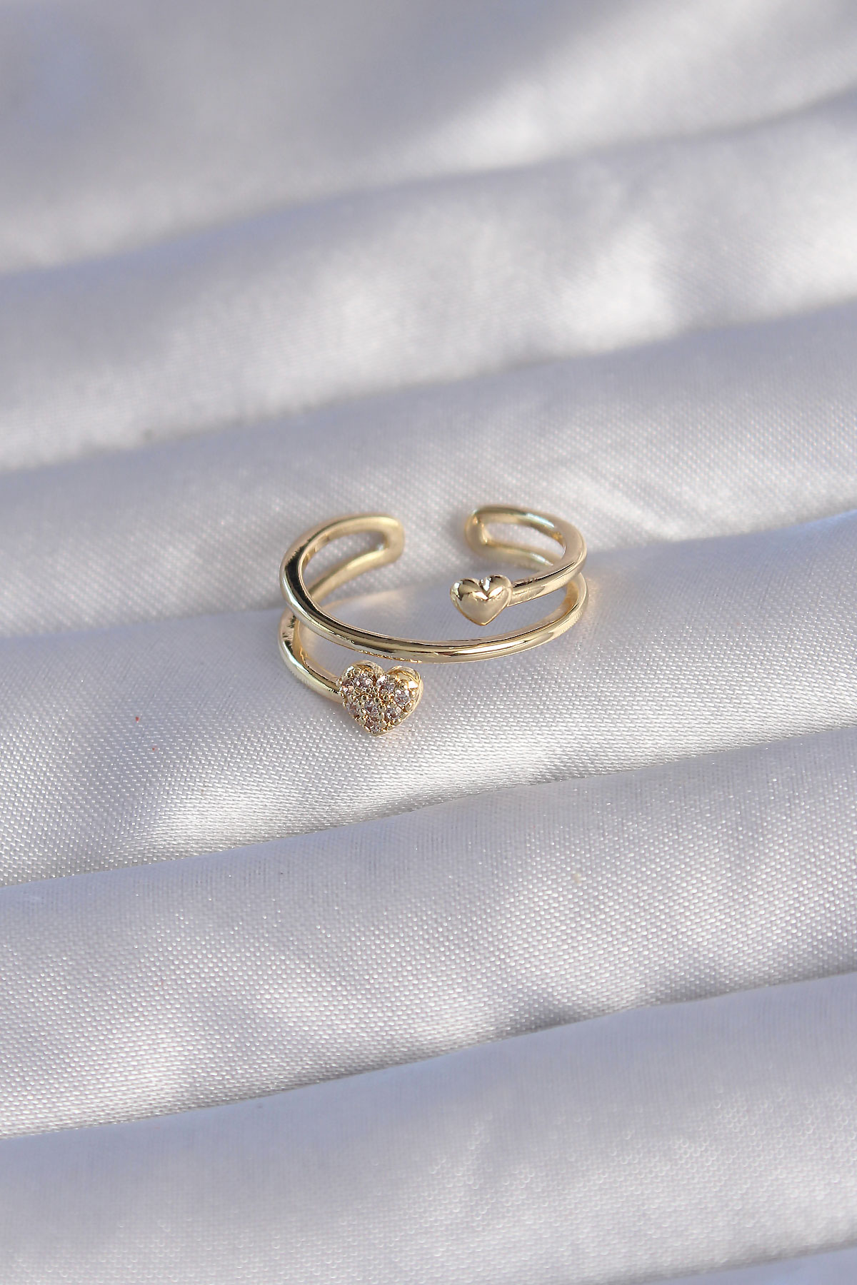 Pirinç Gold Renk Zirkon Taşlı Kalpli Model Ayarlanabilir Yüzük - 255923