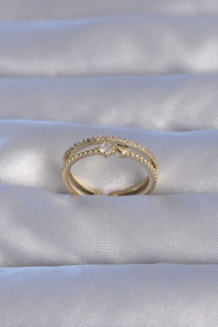 Pirinç Gold Renk Zirkon Taşlı Kalpli Su Yolu Model Ayarlanabilir Yüzük - 255941