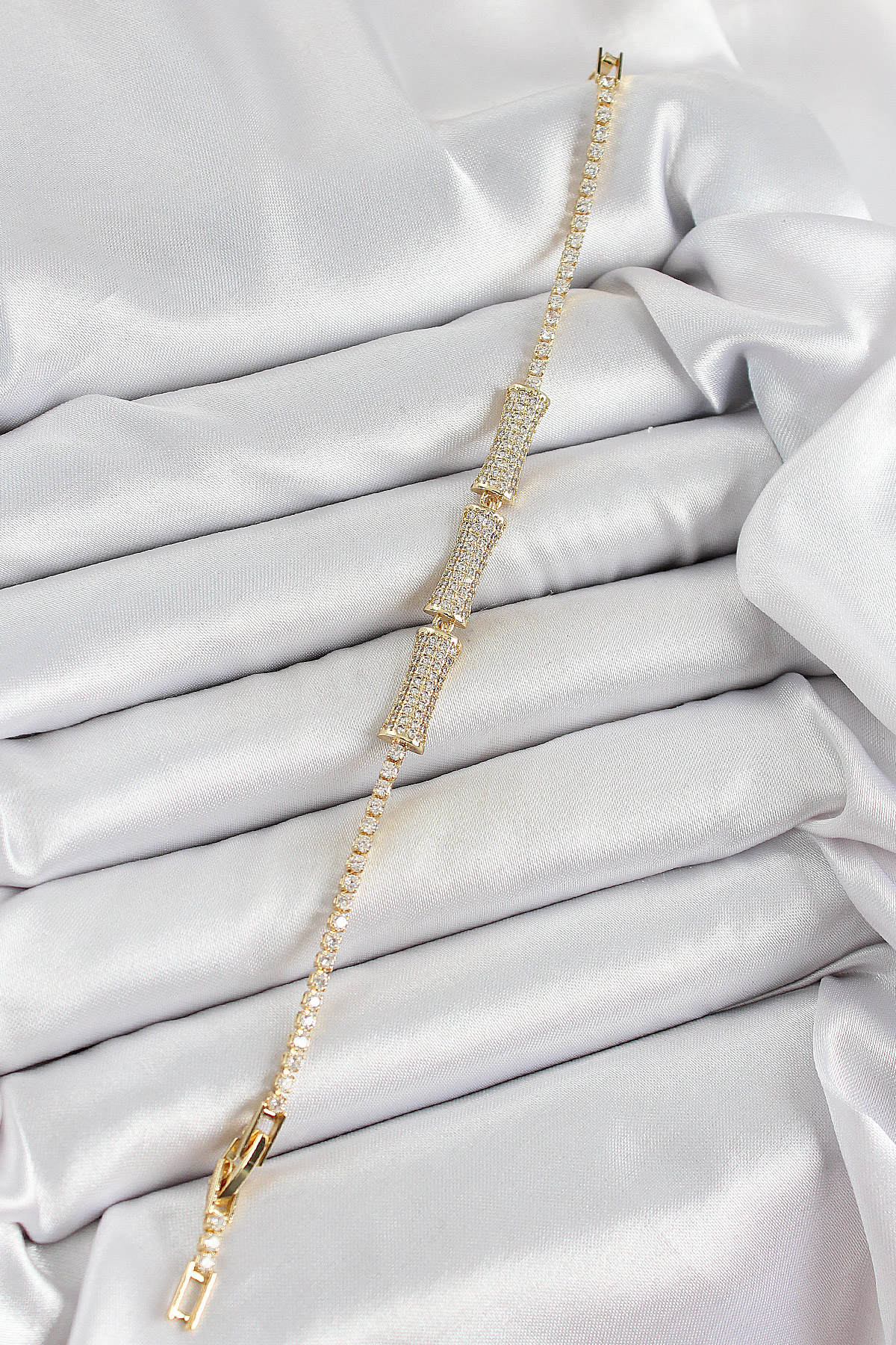 Pirinç Gold Renk Zirkon Taşlı Kemik Model Kadın Bileklik - 263227
