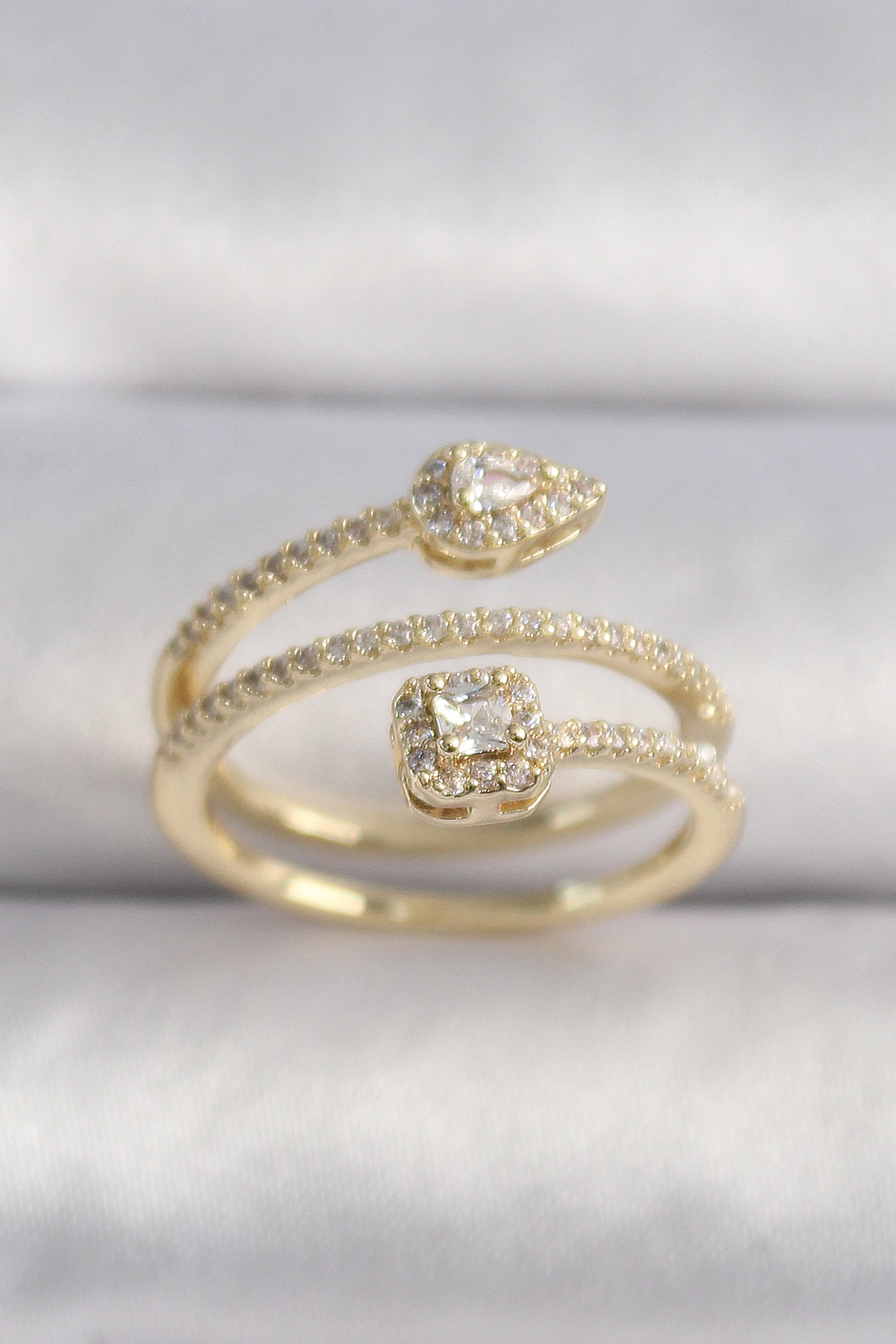 Pirinç Gold Renk Zirkon Taşlı Ok Model VIP Seri Kadın Yüzük - 259411