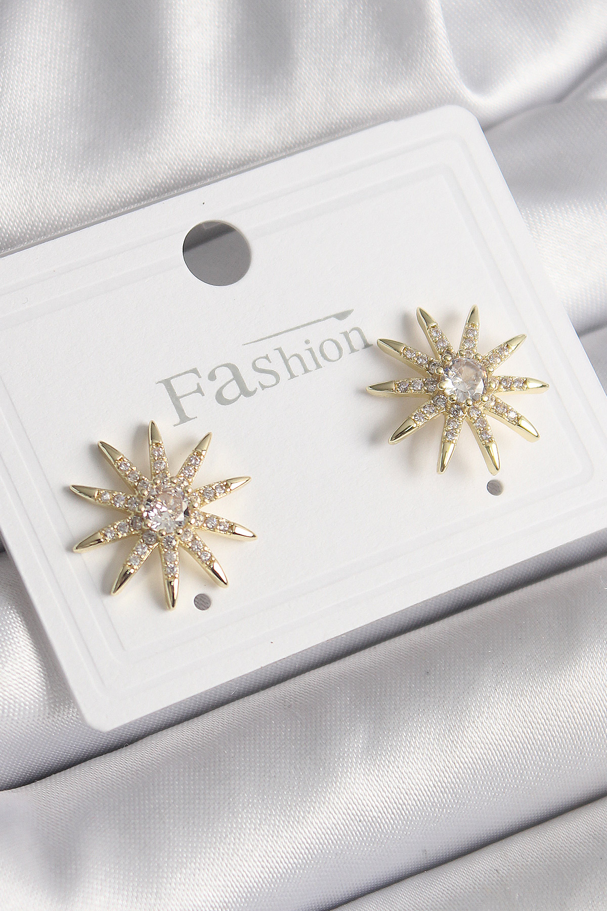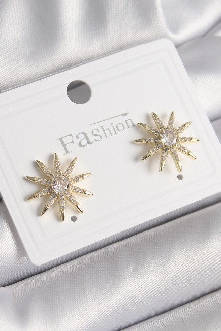 Pirinç Gold Renk Zirkon Taşlı Yıdız Model Kadın Küpe - 259868