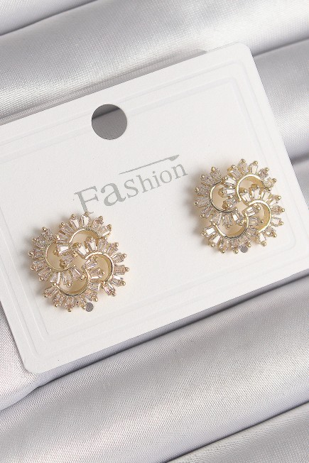 Pirinç Gold Renk Zirkon Taşlı Yonca Model Kadın Küpe - 259338