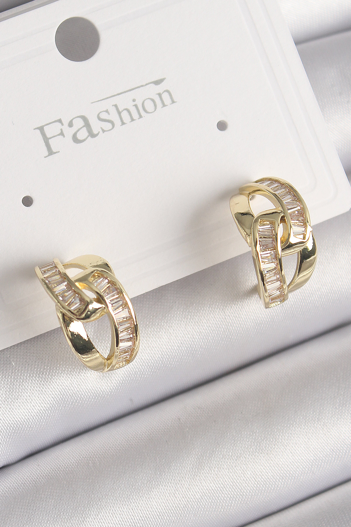 Pirinç Gold Renk Zirkon Taşlı Zincir Model Kadın Küpe - 259340