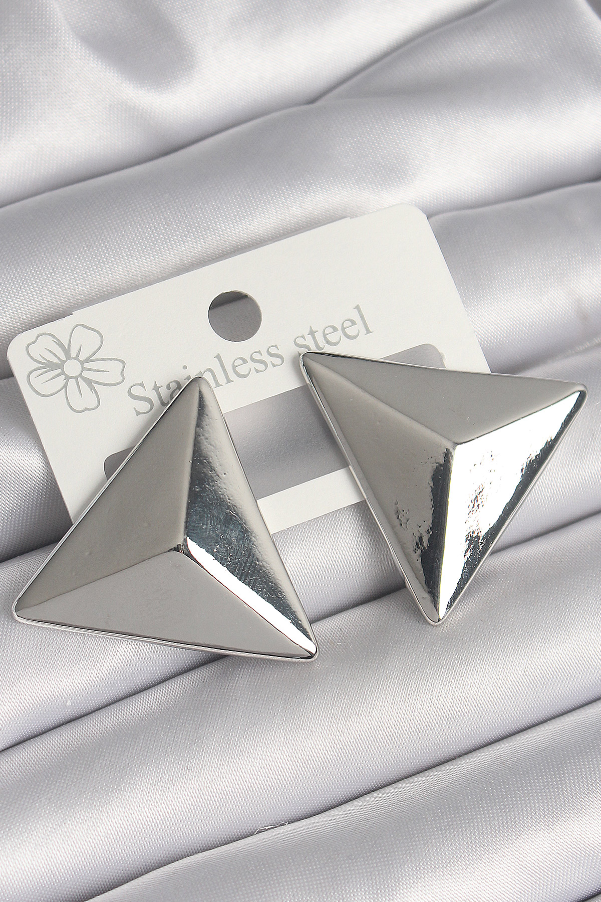 Pirinç Gümüş Renk 3D Üçgen Model Kadın Küpe - 260844