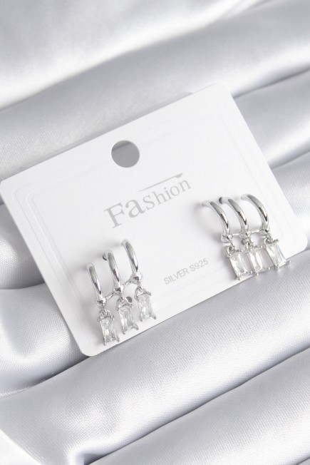 Pirinç Gümüş Renk 3'lü Sallantı Zirkon Taşlı Küpe - 253185