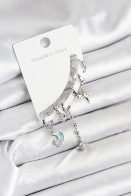 Pirinç Gümüş Renk Ay Model Kadın Set Küpe - 265648