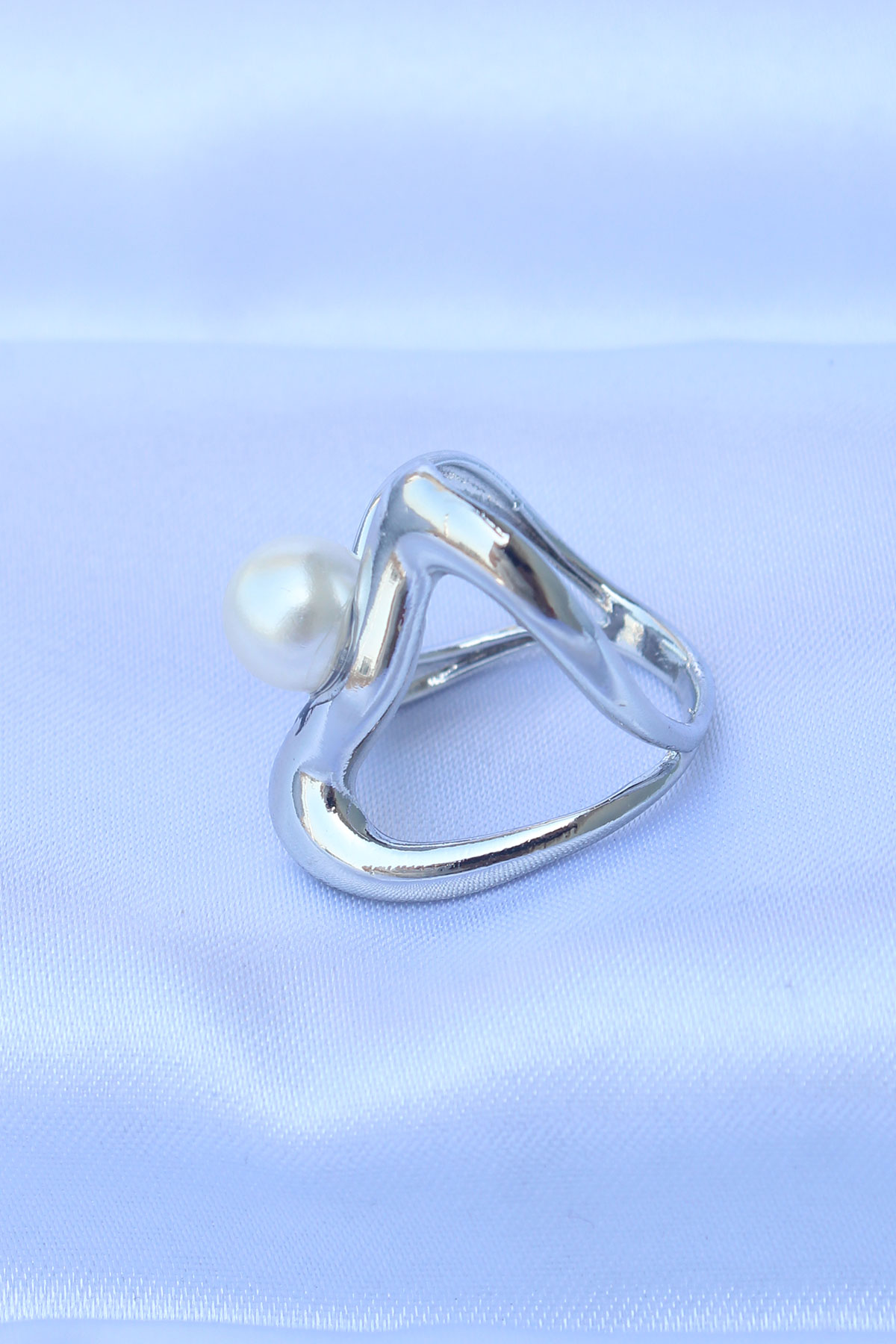 Pirinç Gümüş Renk Ayarlanabilir İnci Taşlı Yüzük - 255488