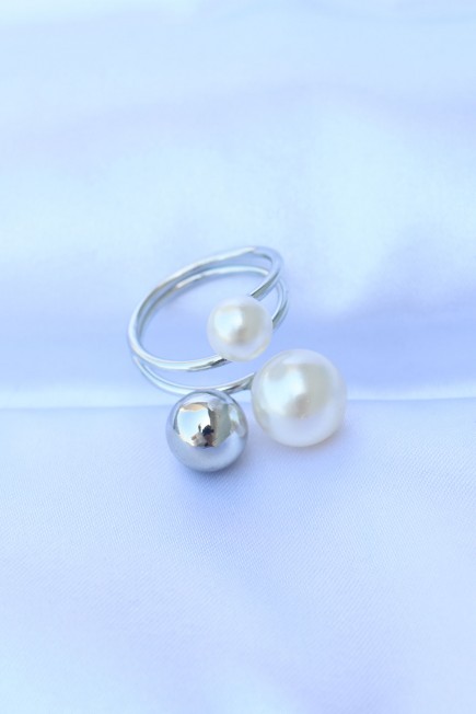 Pirinç Gümüş Renk Ayarlanabilir İnci Taşlı Yüzük - 255502