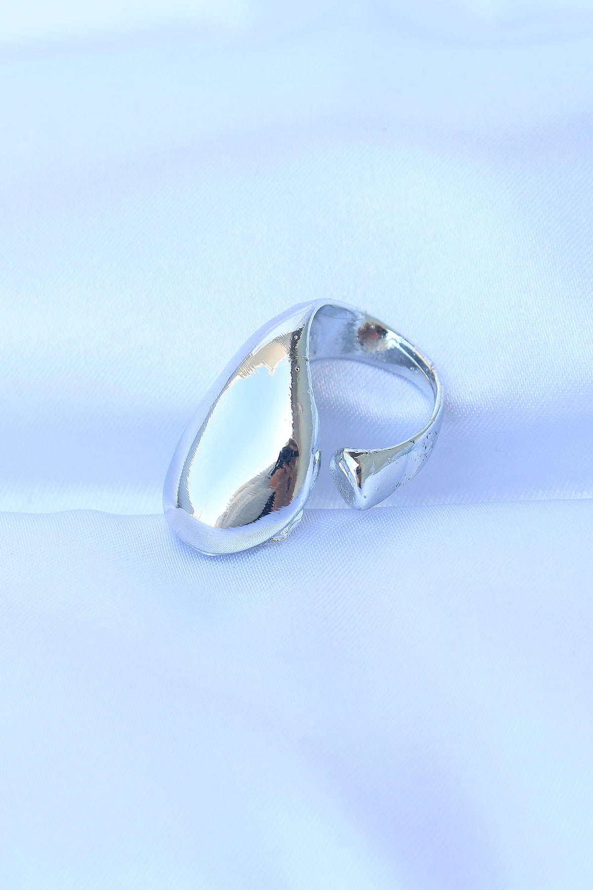 Pirinç Gümüş Renk Ayarlanabilir İri Bombeli Yüzük - 255500