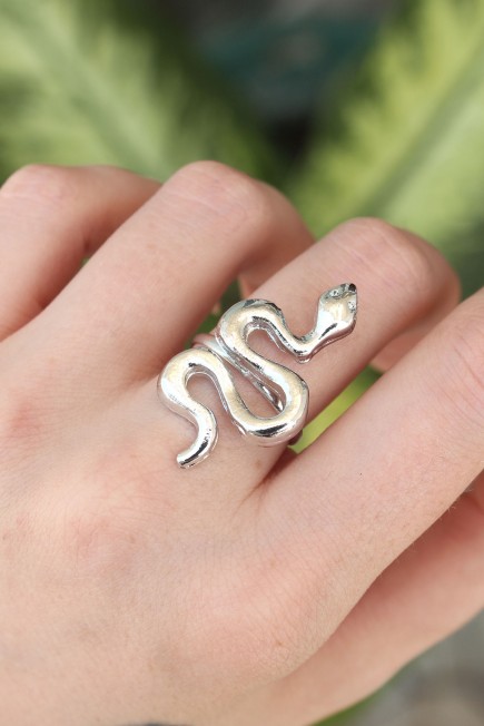 Pirinç Gümüş Renk Ayarlanabilir Yılan Yüzük - 255486