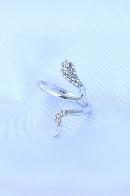 Pirinç Gümüş Renk Ayarlanabilir Zirkon Taşlı Yılan Yüzük - 255510