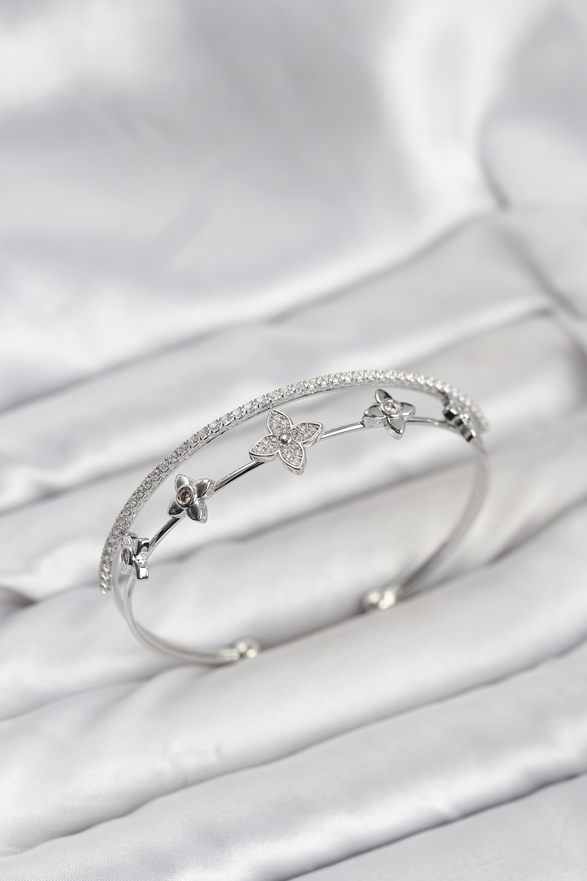 Pirinç Gümüş Renk Çiçek Model Kadın Bileklik - 267063