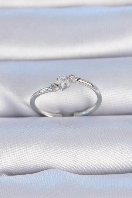 Pirinç Gümüş Renk Çiçek Model Zirkon Taş Detay Kadın Yüzük - 257835