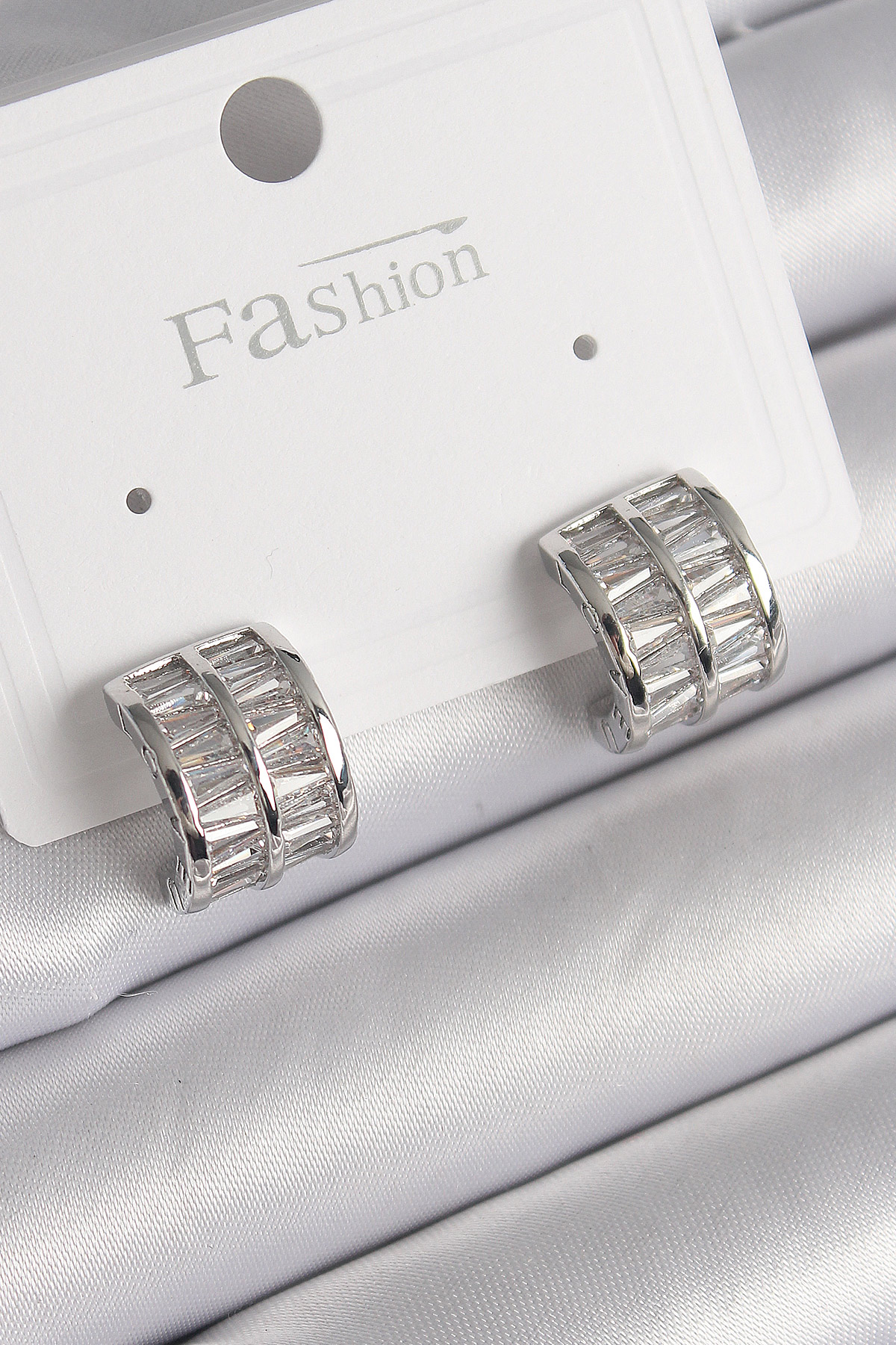 Pirinç Gümüş Renk Çift Sıra Zirkon Taşlı Kadın Küpe - 259301