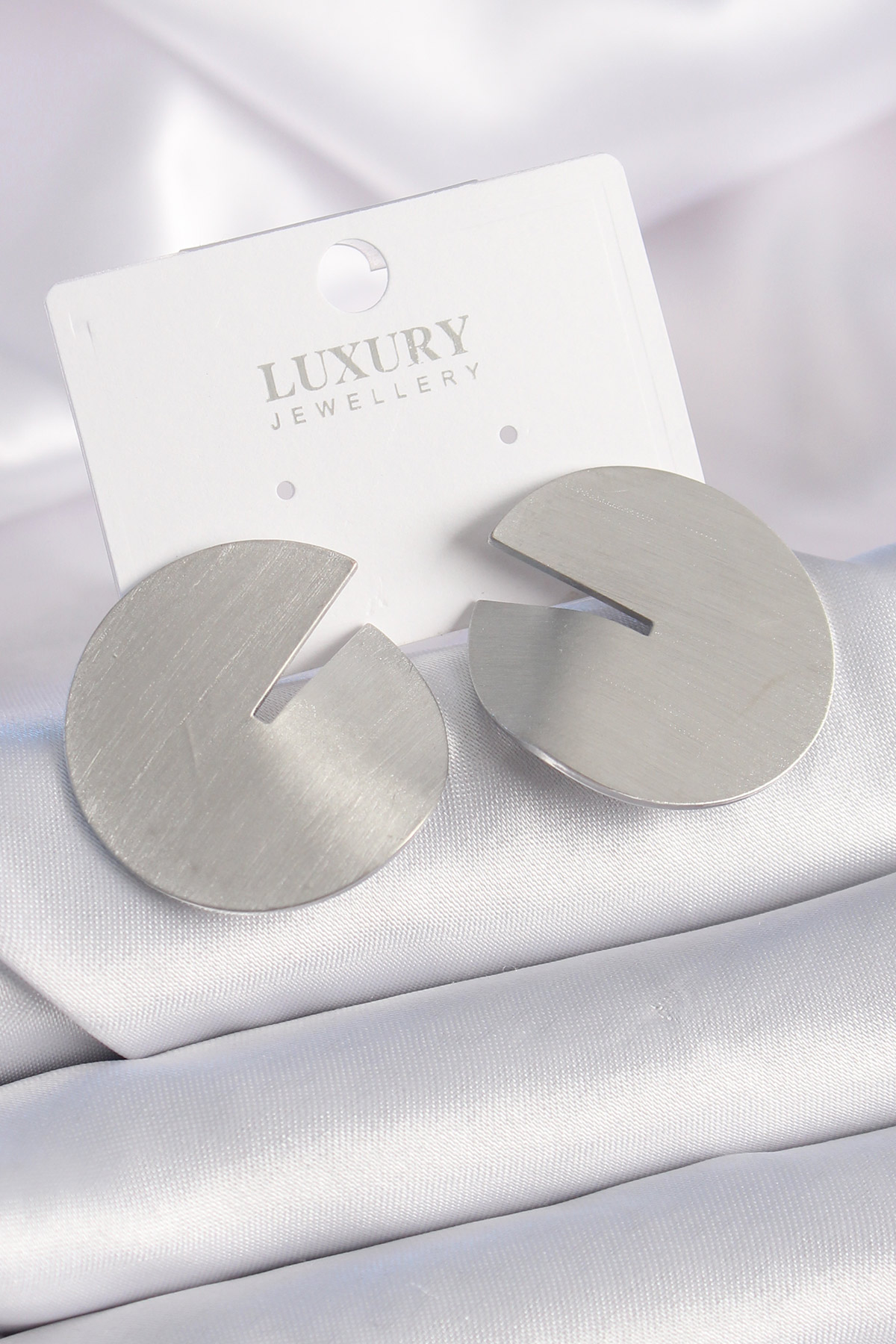 Pirinç Gümüş Renk Daire Plaka Model Kadın Küpe - 257744