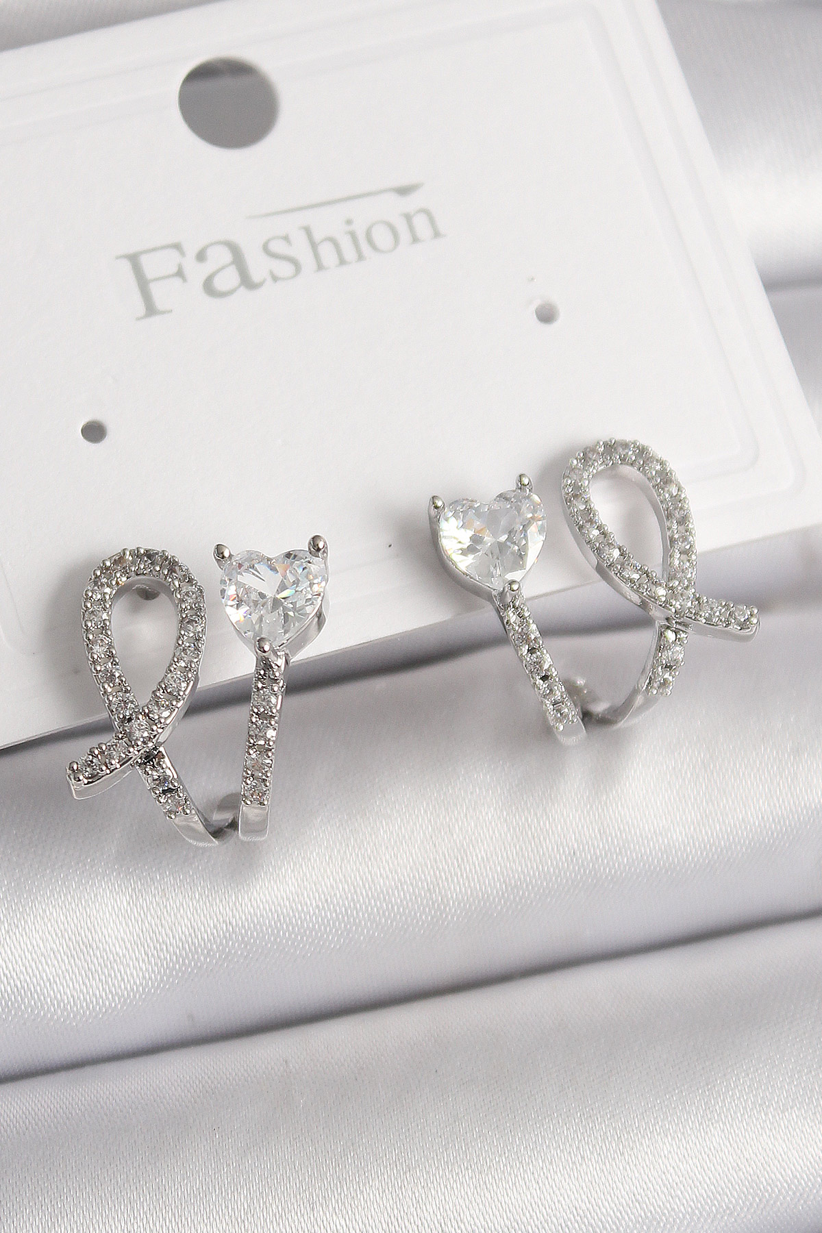 Pirinç Gümüş Renk Düğüm Model Zirkon Taşlı Kalp Detay Kadın Küpe - 259602