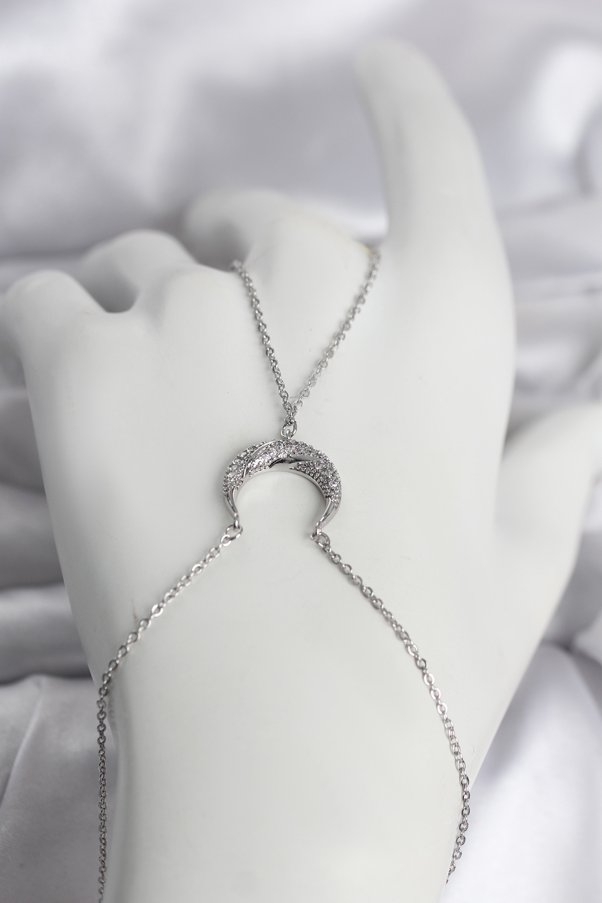 Pirinç Gümüş Renk Hilal Model Zirkon Taşlı Kadın Şahmeran - 268171