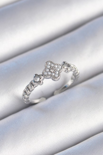 Pirinç Gümüş Renk İncili Yonca Model Zirkon Taş Detaylı Kadın Yüzük - 259162