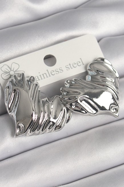 Pirinç Gümüş Renk İşlemeli Kalp Model Kadın Küpe - 260838