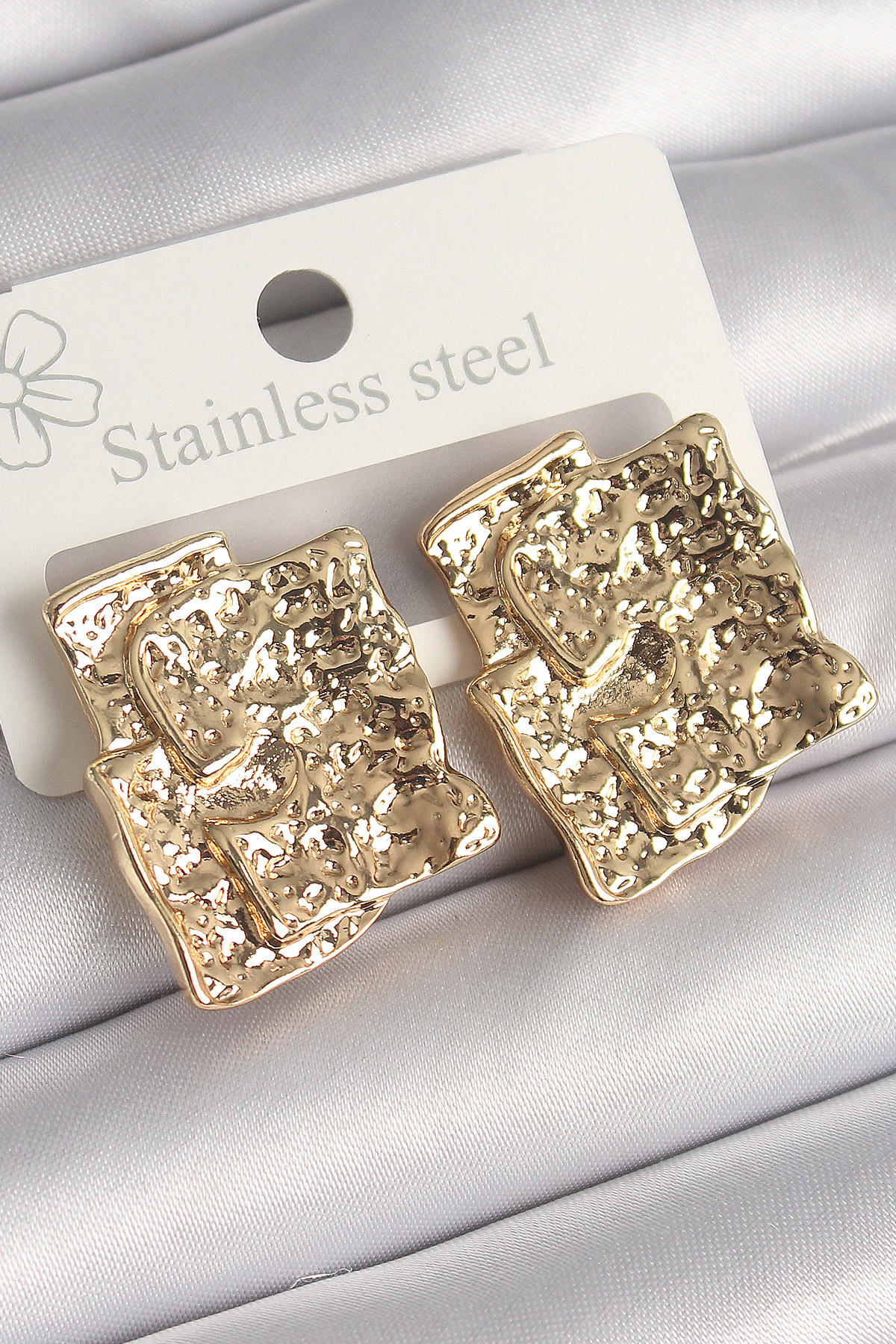 Pirinç Gümüş Renk İşlemeli Kare Plaka Model Kadın Küpe - 260872