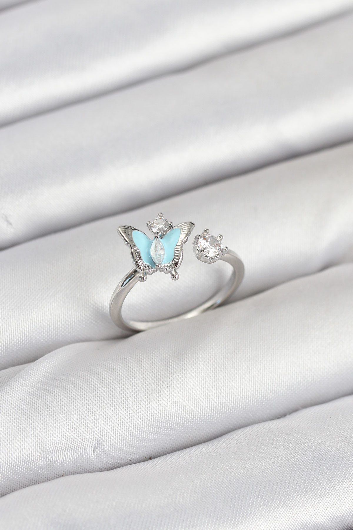 Pirinç Gümüş Renk Kelebek Model Kadın Yüzük - 265800
