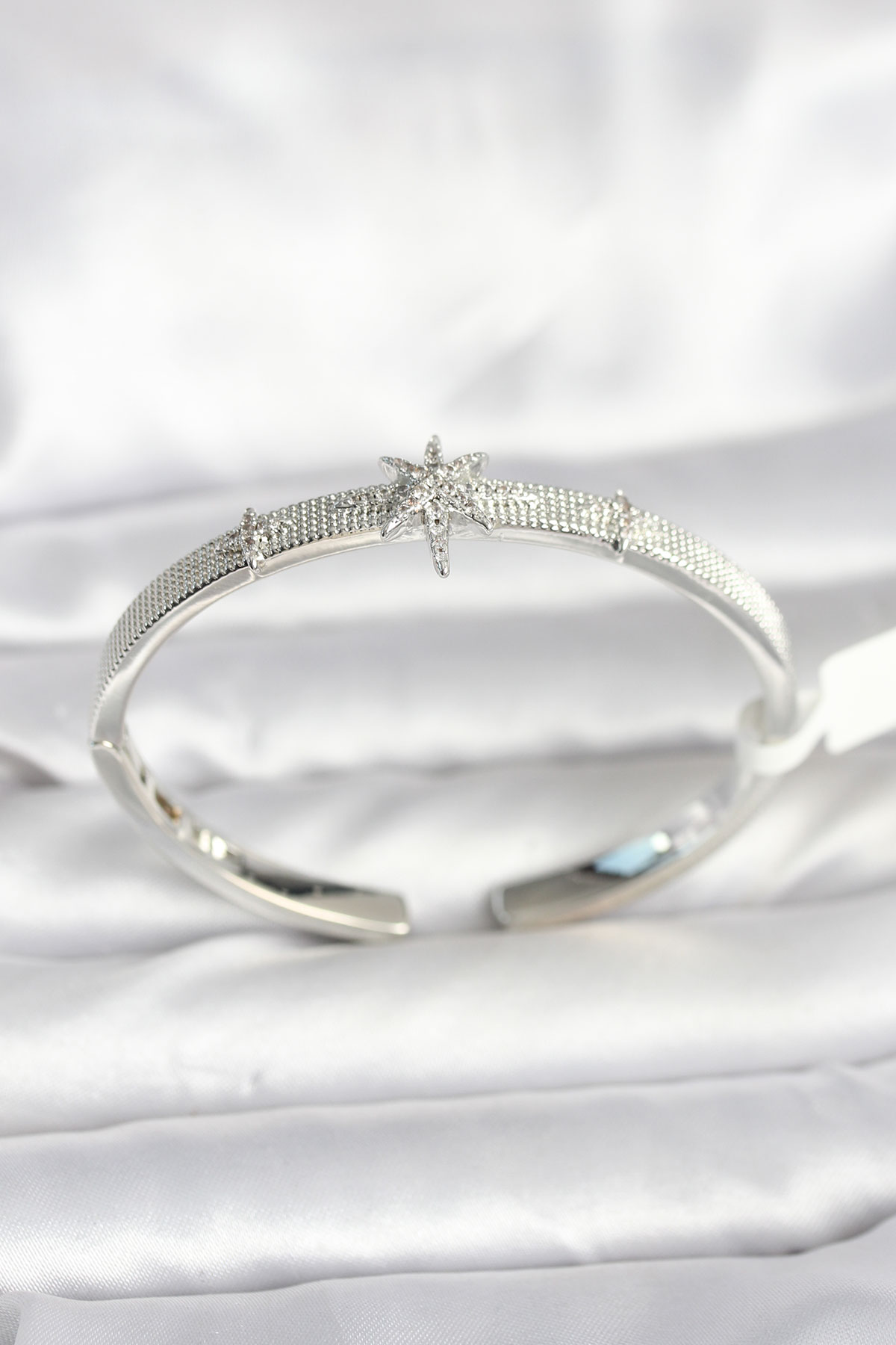 Pirinç Gümüş Renk Kutup Yıldızı Model Kadın Kelepçe Bileklik - 266443