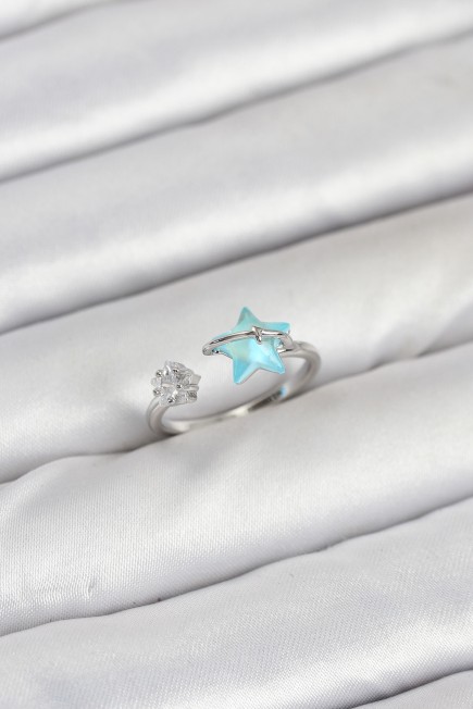 Pirinç Gümüş Renk Mavi Yıldızlı Model Kadın Yüzük - 265804