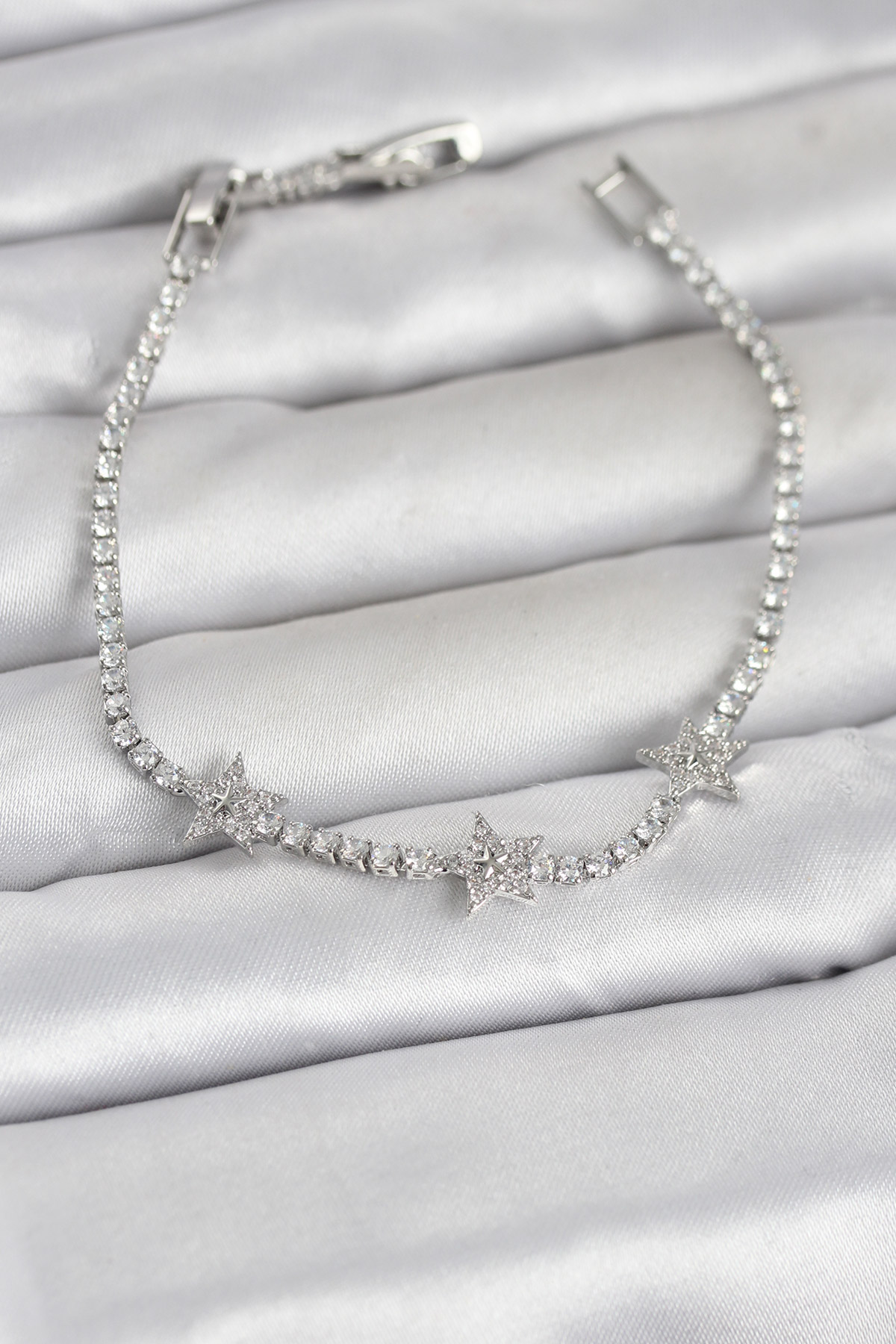 Pirinç Gümüş Renk Minimal Yıldız Model Zirkon Taşlı Su Yolu Kadın Bileklik - 268200