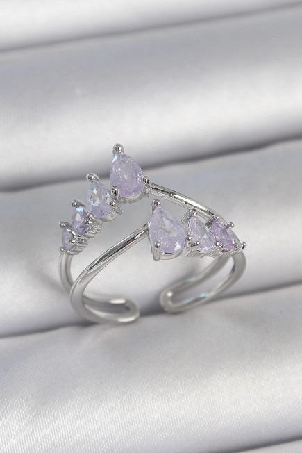 Pirinç Gümüş Renk Mor Damla Zirkon Taşlı Taç Model Kadın Yüzük - 262120