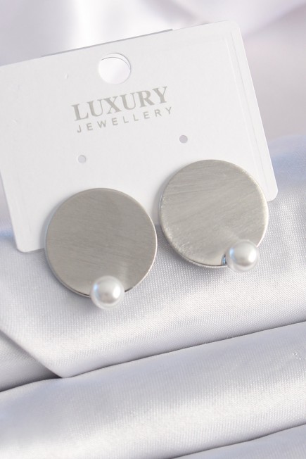 Pirinç Gümüş Renk Plaka Model İnci Detay Kadın Küpe - 257746