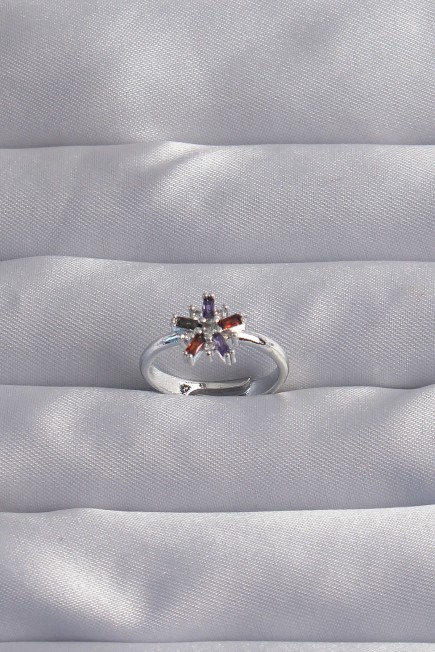 Pirinç Gümüş Renk Renkli Zirkon Taşlı Ayarlamalı Yüzük - 256765