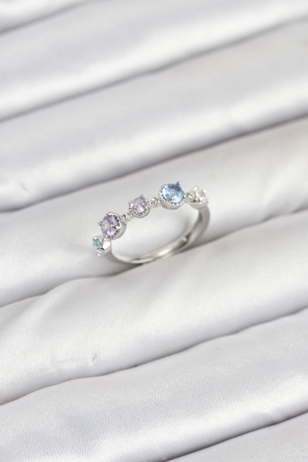 Pirinç Gümüş Renk Renkli Zirkon Taşlı Kadın Yüzük - 265802