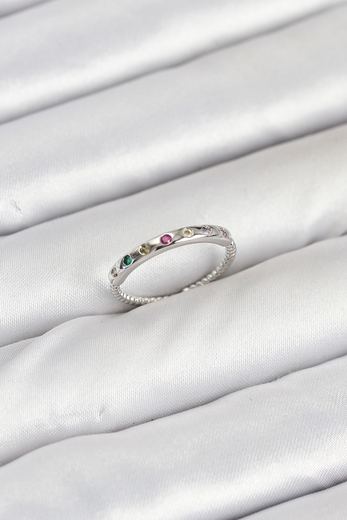 Pirinç Gümüş Renk Renkli Zirkon Taşlı Kadın Yüzük - 265820