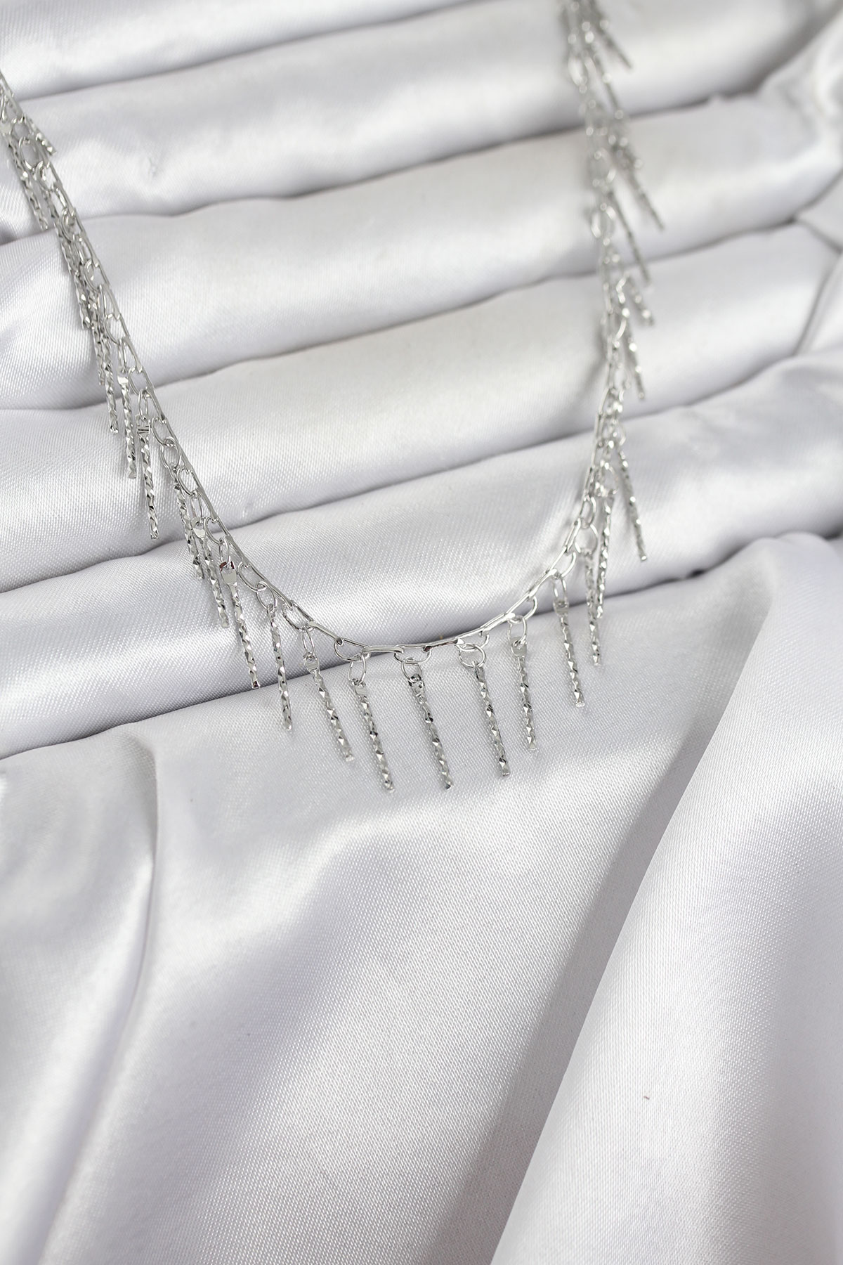 Pirinç Gümüş Renk Saçaklı Model Kadın Kolye - 267708