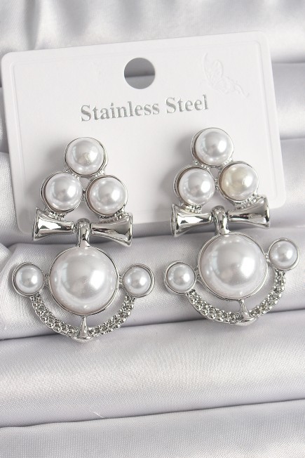 Pirinç Gümüş Renk Sallantı İncili Çapa Model Kadın Küpe - 260400