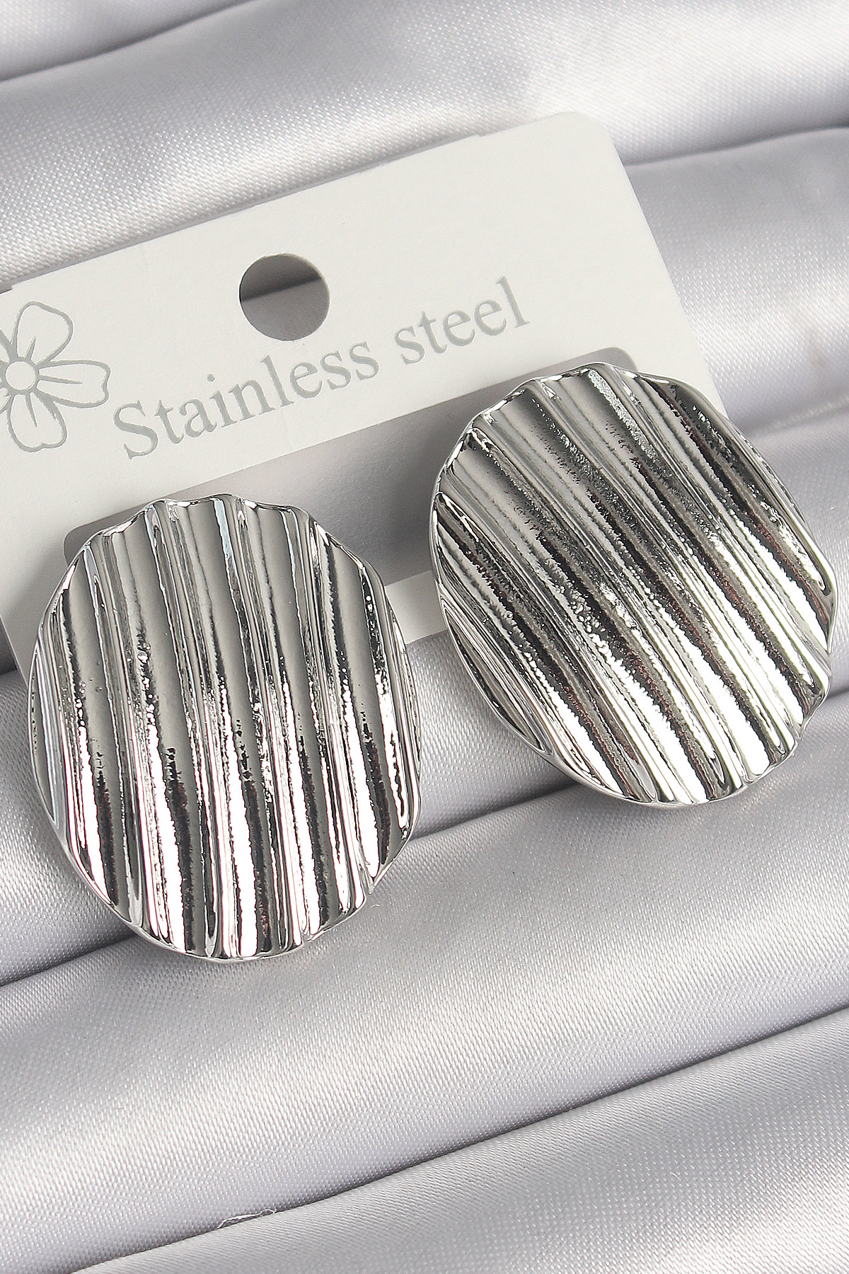 Pirinç Gümüş Renk Sallantı İşlemeli Daire Plaka Model Kadın Küpe - 260843