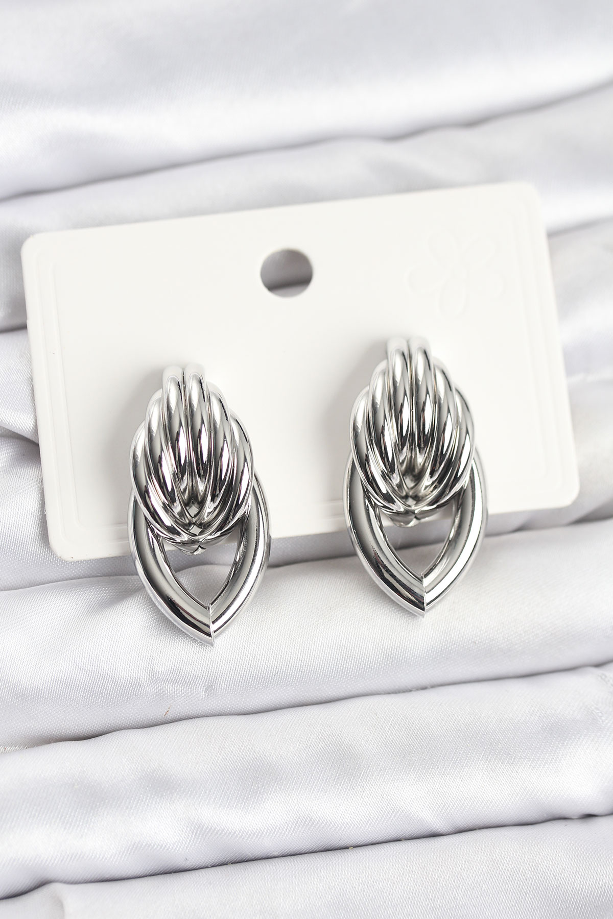 Pirinç Gümüş Renk Sarmal Damla Model Vintage Kadın Küpe - 267188